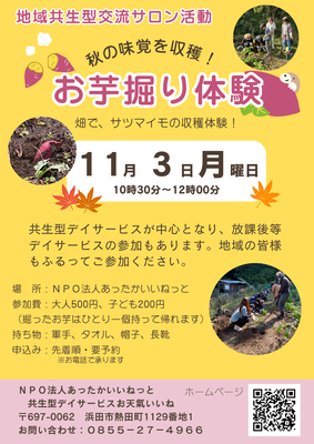 2025年10月29日 芋ほりイベントと、サロン活動のお知らせです。