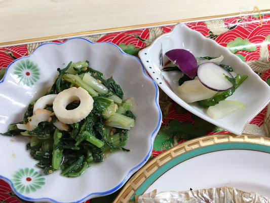 小松菜と春菊の和え物、春と夏の間の、澄んだ味がします(*´꒳`*)☆彡.。.